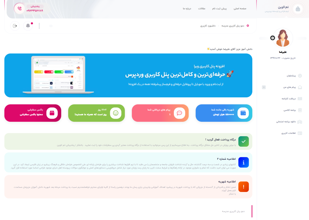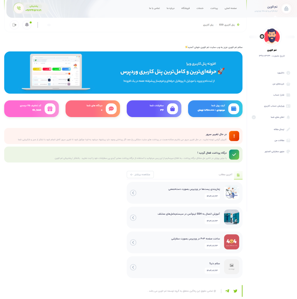 افزونه پنل کاربری پیشرفته ویرا