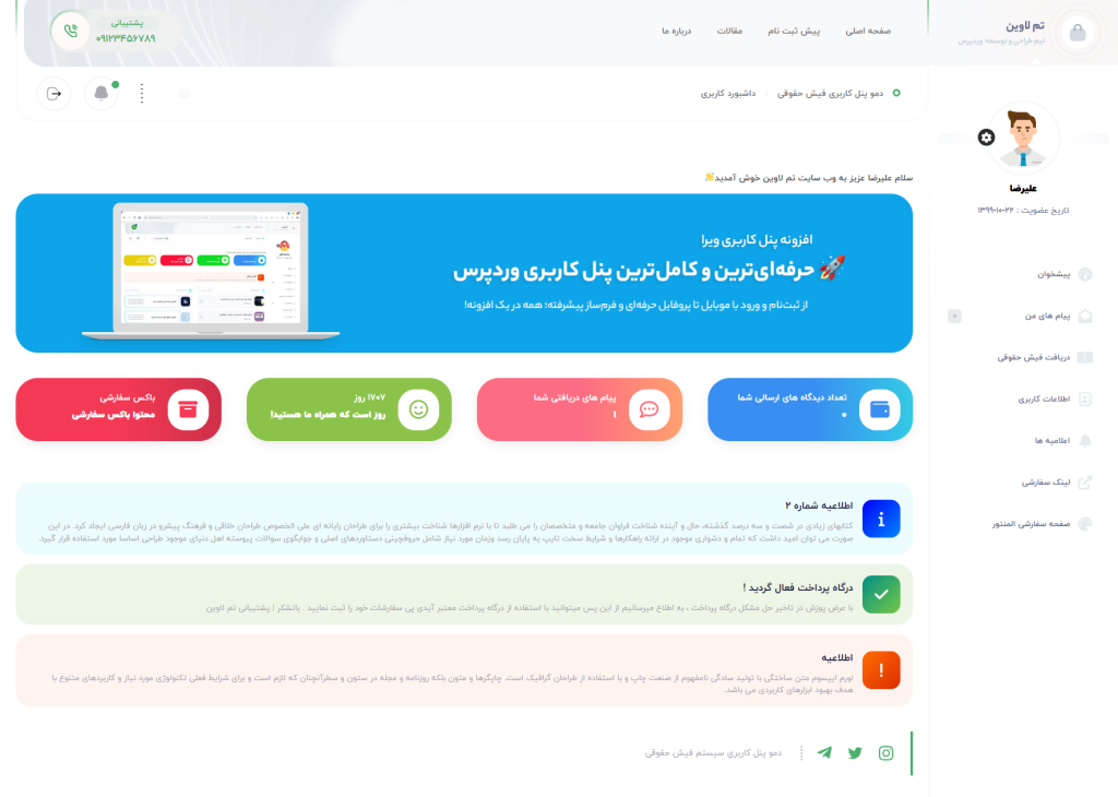 دموهای پنل کاربری ویرا